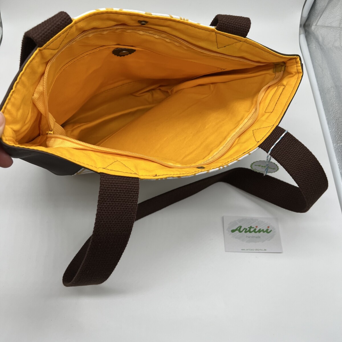 Schreibe die erste Rezension für „Schultertasche braun/ gelb“