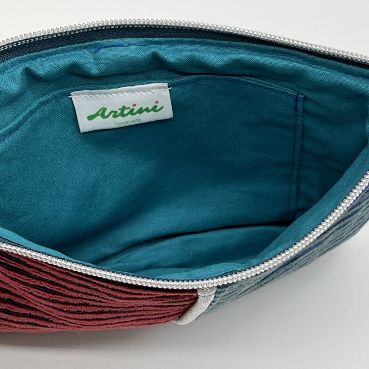 Kleine Clutch oder Utensilientasche aus Upcycling Stoffen mit einem Reißverschluss zum Verschließen. Jede Tasche ist ein Unikat!
